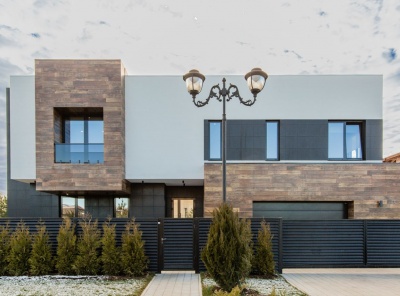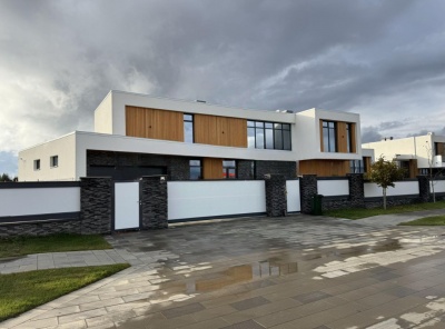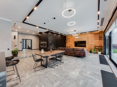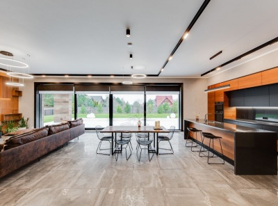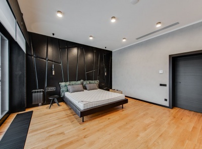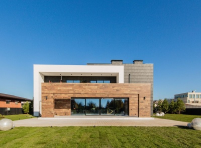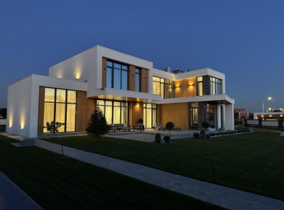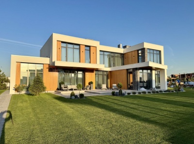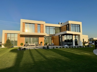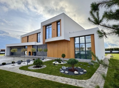 Продажа загородного дома общей площадью 540 кв.м. Новорижское шоссе, 18 км от МКАД. Коттеджный поселок Шато Соверен. Дом построен в 2 этажа по индивидуальному проекту. В отделке фасада преобладает натуральное дерево и плитка, в темное время суток подсветка фасада превращает дом в произведение искусства. В доме предусмотрена эксплуатируемая кровля и терраса, откуда открывается великолепный вид на ухоженный участок и посёлок. Дизайн интерьера выполнен в стиле ар-деко, где преобладает черно-белый контраст.