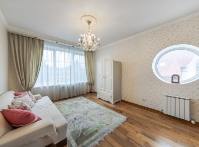 Продажа загородного дома общей площадью 450 кв.м. Минское шоссе, 37 км от МКАД. Коттеджный поселок Зеленая Роща-1. Коттедж построен в 2 этажа. В доме выполнена дизайнерская отделка под ключ. В отделке интерьеров использован натуральный мрамор, американский дуб, крупноформатный керамогранит. Бытовая техника MIELE , кухня - Италия Cleaf Piombo. Вся мебель под заказ. Камин в гостиной. Окна в пол - алюминий Allutec, энергосберегающие стеклопакеты. Канальное кондиционирование. Участок 24 соток с вековыми соснами и елями. Дренаж по периметру дома.