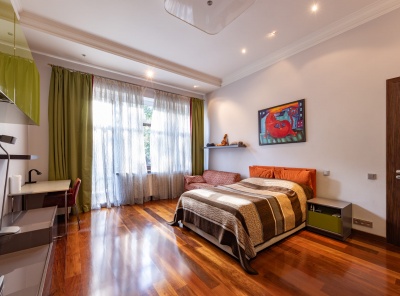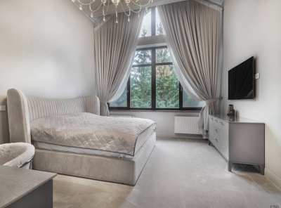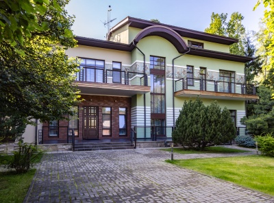 Продажа дома в элитном поселке Солослово площадью 700 кв. м. Рублево-Успенское шоссе, 16 км от МКАД. Дом построен в 2 этажа. Фасад выполнен из натурального материала. Гараж на 4/4 и отдельно стоящий дом для персонала. Лесной участок площадью 50 соток.Планировка:1 этаж - холл, гардеробная, с/у, гостиная, столовая, кухня, каминный зал, кабинет, бассейн, баня-хаммам,2 этаж - холл, 2 спальни с с/у и гардеробными, кабинет-спальня, переход во второй блок, 2 спальни, каждая со своим с/у.