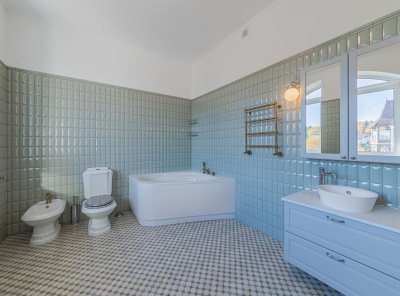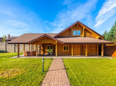 Продажа загородного дома площадью 620 кв.м. Коттеджный поселок Русская деревня. Новорижское шоссе, 24 км от МКАД. Дом площадью 350 кв.м. построен в 2 этажа из кирпича, фундамент и перекрытия монолит, кровля - мягкая черепица. Полы - высококачественный шведский ламинат, плитка - тёплый пол. Высота потолков - 3.10 м. На участке расположен банный комплекс 150 кв.м. из бревна с бассейном и джакузи, гараж 120 кв.м. на 2 м/м и квартирой для персонала. Участок 20 соток, уложен газон.