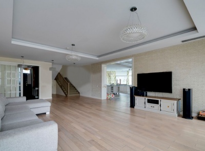Продажа загородного дома общей площадью 600 кв.м. Новорижское шоссе, 19 км от МКАД. Коттеджный поселок Ренессанс Парк. Дом построен в 2 этажа. Под ключ с мебелью. Участок 21 сотка с готовым ландшафтным дизайном.