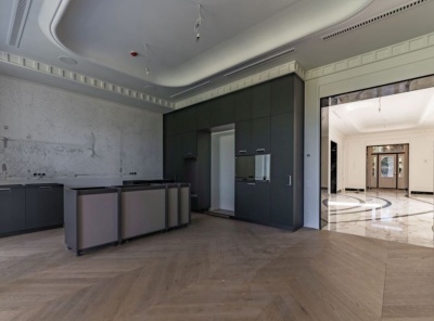 Продажа загородного дома общей площадью 1000 кв.м. Новорижское шоссе, 9 км от МКАД. Коттеджный поселок Никольская Слобода. Дом построен в 5 уровней под отделку. Участок 22 сотки. На участке расположен гараж на 4 м/м с квартирой для персонала, а также беседка для барбекю.Цоколь - техническое помещение1 этаж: холл, гостиная со вторым светом, кухня-столовая, спальня с с/у, гардеробная, 2 с/у.