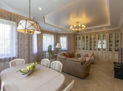 Продажа загородного дома общей площадью 950 кв.м. Новорижское шоссе, 18 км от МКАД. Коттеджный поселок Ренессанс Парк. Построен в 2 этажа. Под ключ. Фасад из натурального камня. В отделке использовались качественные дорогие материалы: итальянский паркет, итальянский мрамор, гипсовая лепнина. Заказная столярка: двери, порталы. Деревянные окна. тальянская кухня Arclinea с техникой V-zug, SubZero, Liebherr. Центральная система приточно-вытяжной вентиляции с увлажнением, центральное кондиционирование.