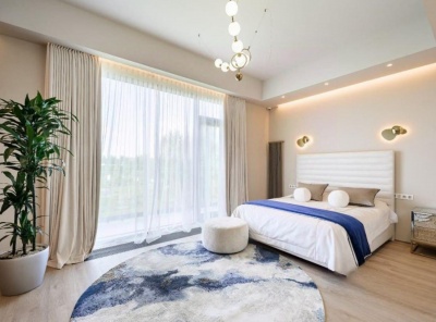 Продажа загородного дома общей площадью 1100 кв.м. Новорижское шоссе, 19 км от МКАД. Коттеджный поселок Миллениум парк. Дом построен в 2 этажа, в бионическом стиле. В отделке дома использованы мрамор и натуральное дерево ценных пород. Участок 15 соток правильной прямоугольной формы, имеет удачное расположение и только двух , уже построенных соседей. Планировка:1 этаж - холл, гардеробная, кухня, гостиная со вторым светом, столовая, рабочая кухня, кабинет, бассейн, сауна, хаммам, c/у, 2 этаж - 5 спален со своими гардеробными и с/у.