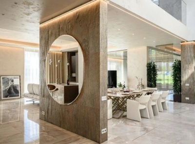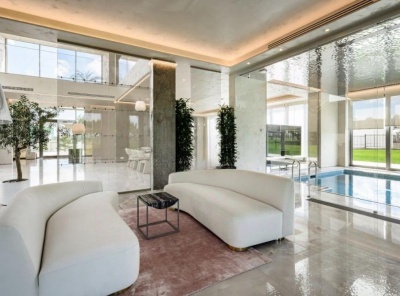 Продажа загородного дома общей площадью 1500 кв. м. Рублево-Успенское шоссе, 17 км от МКАД. Коттеджный поселок Березки Ривер Вилладж. Дом построен в 2 этажа, под ключ, с мебелью. В отделке используются дорогие материалы, современные решения, премиальные бренды. На участке расположен гараж 110 кв.м с зимней барбекю-зоной и комнатой персонала. Участок площадью 29 соток с уложенным газоном и высаженными деревьями.