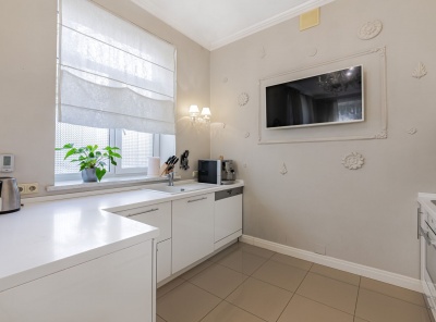Резиденция в классическом стиле площадью 2000 м² расположена на открытом участке 40 соток с ландшафтным дизайном. Фасад дома облицован натуральным камнем и богато украшен лепниной, резными карнизами балюстрадой и колоннами у парадного входа. Интерьер выдержали в замковом стиле в темных тонах. Сердце дома — просторная каминная с балконом, с которого спускается винтовая лестница. В отделке использовали дерево ценных пород, натуральный камень, лепнину, позолоту, тканевые обои, плотный текстиль.