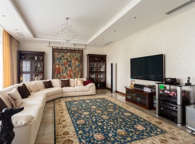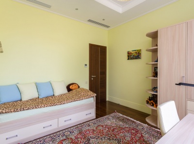Продажа загородного дома общей площадью 1128 кв.м. Новорижское шоссе, 19 км от МКАД. Коттеджный поселок Миллениум Парк. Коттедж построен в 3 уровня. Выполнена дизайнерская отделка под ключ без мебели. Приточно-вытяжная система вентиляции с кондиционированием Daikin. Просторные комнаты, высокие потолки и панорамное остекление. Грамотная планировка. Гостиная с камином и вторым светом. В отделке преимущественно светлые тона. Очень много мест хранения. Техника Gaggenau.