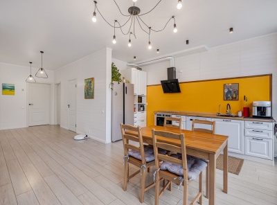 Аренда 3 комнатной квартиры площадью 103,6 кв.м. Новорижское шоссе 14 км от МКАД. Коттеджный поселок Павлово-2. Отличная, уютная квартира полностью меблирована и готова для комфортного проживания. Современный стиль. Качественная отделка. Вся необходимая бытовая техника от лучших производителей уже в наличии. Окна выходят в тихий двор. Большое количество свободных машиномест в охраняемом дворе.Планировка: прихожая-холл, с/у, кухня-столовая-гостиная, хозяйская спальня со своим с/у, спальня.