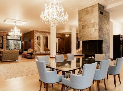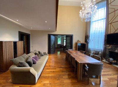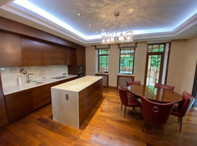 Аренда загородного дома площадью 500 кв.м. Новорижское шоссе, 14 км от МКАД. Коттеджный поселок Пенаты. Дом построен в 3 уровня из кирпича под ключ с новым качественным ремонтом. Лестница из массива, полы из оникса и ценных пород дерева, алюминиевые стеклопакеты, бытовая техника Miele. Лаконичные формы, сдержанный декор, обилие стеклянных поверхностей и использование в отделке элементов натурального дерева и природного камня. Панорамные окна, гостиная с камином, теплые полы.