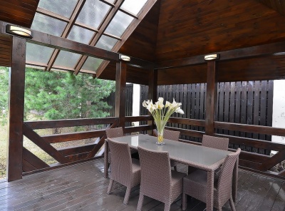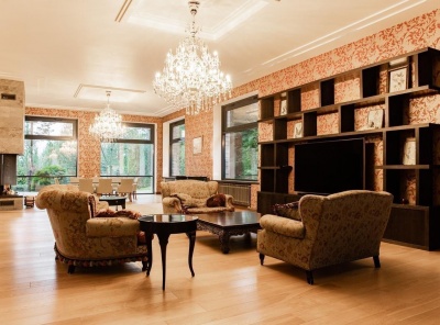 Аренда загородного дома общей площадью 550 кв.м. Коттеджный поселок Миллениум Парк. Новорижское шоссе, 19 км от МКАД. Коттедж построен в 2 этажа с отделкой, полностью меблирован и оснащен техникой. Гостиная с камином и витражными окнами высотой в два этажа, столовая выходит на крытую террасу, выполненную из натурального дерева, зимний сад, окружённый панорамными окнами с трёх сторон. Участок 23 сотки с ландшафтным дизайном и отдельной лаундж-зоной.
