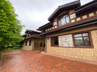 Аренда загородного дома общей площадью 1200 кв.м. Поселок Новинки. Новорижское шоссе 14 км от МКАД. Построен в 3 этажа под ключ. Современный дом с большими панорамными окнами, балконами необычной архитектурной формы, оригинальной по форме крышей, с канадским кедром и дорогим камнем во внешней отделке. Внутренние интерьеры, выполнены в современном стиле. Изюминкой дома является камин-очаг, множество зеркал, лестница со стеклянными перилами. На участке 47 cоток есть отдельно стоящий гараж 329 кв .м. с квартирой для персонала.