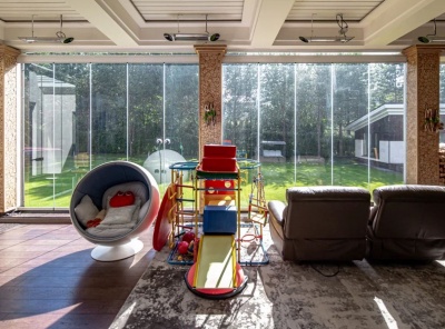 Аренда загородного дома общей площадью 750 кв.м. Коттеджный поселок Миллениум Парк. Новорижское шоссе, 19 км от МКАД. Дом построен в 2 этажа. Под ключ с мебелью. Ремонт в стиле арт-деко. Рядом с основным домом расположен гостевой дом площадью 185 кв.м с профессиональной спа-зоной. Здесь предусмотрена дровяная баня, купель, горячий чано и зона отдыха с шезлонгами. Кроме этого, есть гостиная с большим диваном и телевизором, кухней, большой крытой верандой и барбекю-зоной.