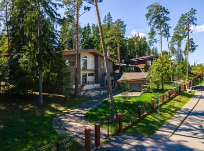 Продажа загородного дома общей площадью 870 кв.м. Новорижское шоссе, 37 км от МКАД. Коттеджный поселок Покровское-Рубцово. Дом построен в 3 уровня из кирпича. Под отделку. Современный проект в стиле шале, функциональная планировка, большие площади остекления, живописнейшие виды из окон. Лесной участок площадью 36 соток правильной прямоугольной формы расположен в глубине поселка, по периметру имеется ограждение. К участку примыкает всего два соседа.