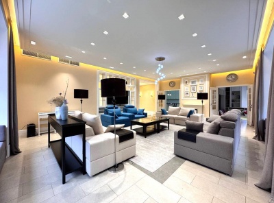 Продажа загородного дома общей площадью 1315 кв.м. Коттеджный поселок Гринфилд. Новорижское шоссе, 24 км от МКАД. Дом построена в 2 этажа, под ключ. Во всех помещениях выполнена чистовая отделка материалами класса Deluxe. Дом полностью укомплектован мебелью и бытовой техникой, подключен к центральным системам водоснабжения и канализации, магистральному газопроводу и электросети. На участке площадью 26 соток выполнен ландшафтный дизайн. Двухъярусный сад, живая изгородь из декоративных кустарников и деревьев составляют единую композицию.