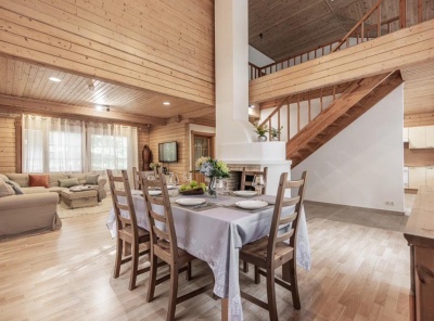 Продажа загородного дома площадью 264 кв.м. Ильинское шоссе 14 км от МКАД. Коттеджный посёлок Николина Поляна. Дом построен в 2 этажа, под ключ. Дом из финского бруса в элитном эко-поселке с уникальным микроклиматом. Площадь участка 17 соток.Планировка: 1 этаж - кухня, столовая, гостиная, спa зона (с/у, душ и сауна), 2 спальни,2 этаж - 2 спальни, мастер спальня со своим с/у, в каждой комнате большие встроенные шкафы,Цокольный этаж - котельная и кладовка (возможно использовать как постирочную).