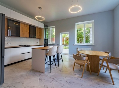 Продажа дома в элитном поселке Солослово площадью 450 кв. м. Рублево-Успенское шоссе, 16 км от МКАД. Дом построен в 2 этажа, под ключ. Фасад выполнен из натурального камня и дерева. Дом готов для жизни, выполнена стильная и лаконичная отделка в светлых тонах, а панорамное остекление дарит много света и добавляет пространству воздушности. Оборудован всей необходимой бытовой техникой и сантехникой. В доме установлена система приточной вентиляции, канальное кондиционирование и видеонаблюдение.