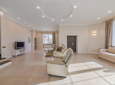 Продажа загородного дома общей площадью 520 кв.м. Новорижское шоссе, 24 км от МКАД. Коттеджный поселок Монтевиль. Коттедж построен в 3 уровня по монолитной технологии из кирпича, расположен в тихой части посёлка. На участке 20 соток находится навес на 2 м/м и гараж на 2 м/м, выполнен ландшафтный дизайн с подсветкой дорожек.Планировка1 этаж - холл, кухня-столовая, гостиная с камином, кабинет, спальня.2 этаж - мастер спальня, 2 спальни с с/у и гардеробными.Мансарда - домашний кинотеатр с бильярдным столом, кухня, 2 комнаты свободного назначения.