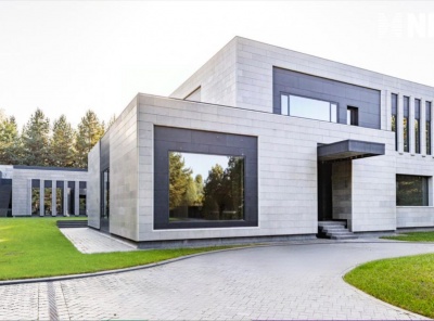 Продажа нового загородного дома площадью 2240 кв.м. Новорижское шоссе, 9 км от МКАД. Коттеджный поселок Никольская Слобода. Особняк построен в 2 этажа. Этот дом воплощает все лучшие черты современной архитектуры и дизайна. Внешний вид здания привлекает внимание своим стильным обликом. Фасад отделан натуральным камнем серого оттенка с акцентами натуральным камнем темно-серого цвета. Окна с электроприводами Schuco обеспечивают идеальную гармонию внутри дома, идеальная тишина и спокойствие.