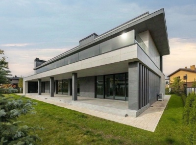 Продажа загородного дома площадью 560 кв. м. Новорижское шоссе, 25 км. от МКАД. Коттеджный поселок Онегино. Дом построен в 2 этажа. Дом имеет монолитный каркас, стены из газоблока. Фасад отделан керамогранитом двух цветов с вставками из ДКП под дерево. Крыша покрыта мембраной ПВХ, с галькой. Контурная подсветка. Панорамные большие окна и двери Shuco. Сделана ландшафтная планировка участка площадью 14 соток с дренажной системой. Смонтирована система автополива (дистанционное управление с телефона). Имеется гараж на 2 м/м.
