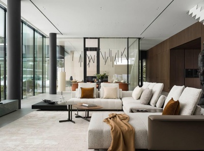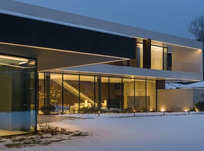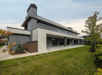 Продажа загородного дома площадью 920 кв.м. Рублево-Успенское шоссе, 21 км от МКАД. Коттеджный поселок Ново-Успенский. Дом построен под ключ. Вентилируемый фасад облицован крупноформатным керамогранитом Laminam, Cotte d'Este и декорирован термоясенем и подсветкой. Установлены панорамные окна на базе алюминиевого профиля Schüco и стеклопакетов AGC со стеклом триплекс. Современный интерьер разработан бюро SL Project, в отделке использованы натуральный камень, дерево и металл, керамика Cielo, сантехника Gessi, Antonio Luppi, Fantini. Лесной участок 20 соток.
