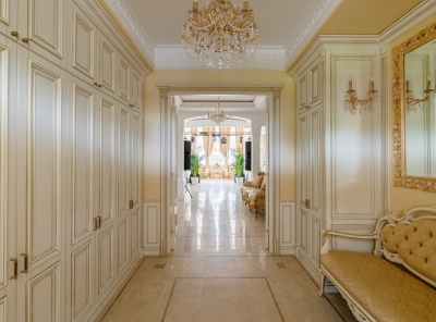 Отличное предложение! Продажа загородной резиденции площадью 1000 кв.м. Новорижское шоссе, 18 км от МКАД. Коттеджный поселок Кристалл Истра. Прилесной участок 42 сотки с выходом в лес. Резиденция построена по индивидуальному проекту и расположена на возвышенности. Из окон открывается панорамный вид на поселок. В доме выполнена качественная отделка в современном стиле. Красивая парадная лестница ведет на второй этаж. На втором этаже расположена большая солнечная гостиная. В доме много пространства и света за счет панорамного остекления.