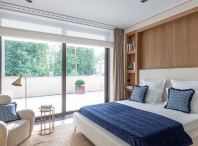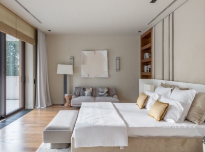 Продажа загородного дома общей площадь 1495 кв.м. Поселок Жуковка, Рублево-Успенское шоссе, 9 км от МКАД. Дом построен в 3 этажа, под ключ. Архитектура от Spaceworkers (Португалия) и интерьер от Image de Marc (Франция) создают гармоничное пространство, где современный стиль сочетается с природой и комфортом. Полы отделаны мрамором LIMRA с системой тёплого пола на теплоносителе. Стены облицованы мрамором JURA BEIGE, дополнены панелями из МДФ в шпоне эвкалипта и окрашены краской LITTLE GREENE. Мебель от BONALDO, JNL, MERIDIANI и EICHHOLTZ создают атмосферу уюта и сдержанной роскоши.