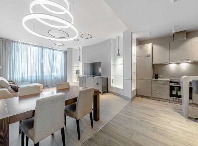 Аренда 2-комнатных апартаментов площадью 75 кв.м. Метро Международная, 2 минуты пешком. ЖК МФК ОКО. Уютные, светлые, солнечные апартаменты с дизайнерским ремонтом, с использованием натуральных материалов. Кухня оборудована встроенной высококачественной техникой первоклассных мировых брендов. Из окон открываются потрясающие панорамные виды. S8Планировка: кухня-столовая, гостиная, спальня с ванной комнатой и гардеробной, гостевой с/у.