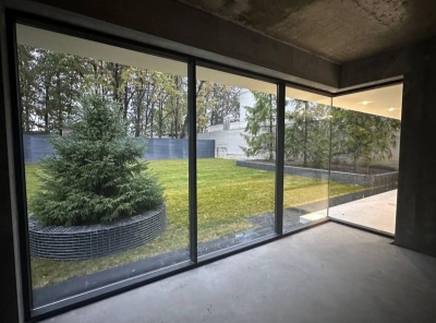 Продажа загородного дома общей площадью 855 кв.м. Коттеджный поселок Монтевиль. Новорижское шоссе, 24 км от МКАД. Коттедж построен 2 этажа. Без отделки. Панорамное остекление. Эксплуатируемая кровля. Участок 15 соток с газоном, оригинальным освещением и мощеными дорожками.