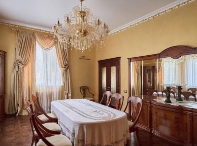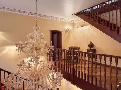 Продажа загородного дома общей площадью 740 кв.м. Коттеджный поселок Горки-2. Рублево-Успенское шоссе, 15 км от МКАД. Дом построен в 2 этажа, под ключ. Дорогостоящие материалы в отделке - массив дерева, камень, сусальное золото, венецианская штукатурка. Встроенная техника производителей AEG и Bosh, мебель производства Италии и Испании. На участке площадью 12 соток гараж на 2 машиноместа, беседка с зоной отдыха в окружении елей и сосен.