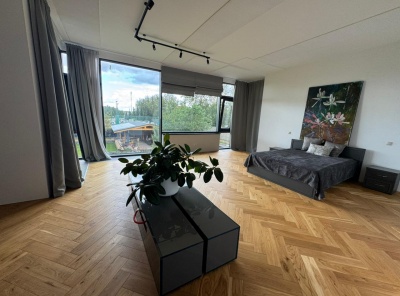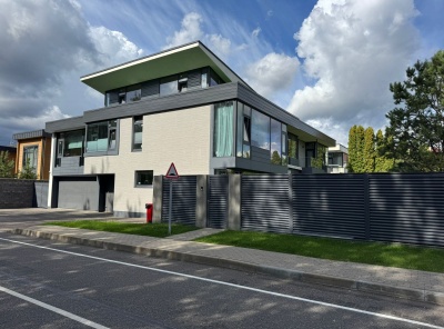 Продажа загородного дома площадью 280 кв.м. Новорижское шоссе, 25 км от МКАД. Коттеджный поселок Лесные зори. Дом построен в 2 этажа. Великолепный дом в стиле Фрэнка Ллойда Райта, построенный с использованием премиальных импортных материалов. Снаружи выполнена полная отделка, установлены оконные системы Alutech, смонтирована фальцевая кровля, установлено видеонаблюдение, выполнено благоустройство территории. Дом подключен ко всем необходимым коммуникациям: электричество, центральный водопровод, канализация и газоснабжение.