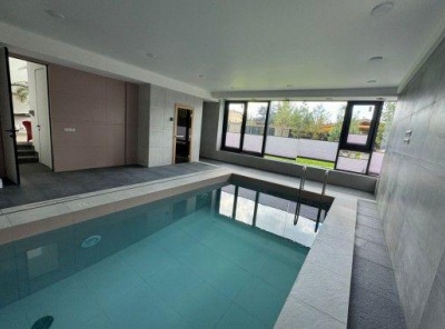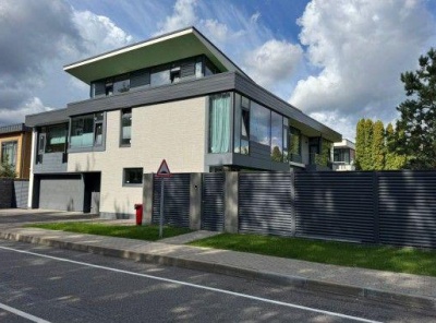 Аренда загородного дома площадью 770 кв.м. Новорижское шоссе, 9 км от МКАД. Коттеджный поселок Никольская Слобода. Коттедж построен в 2 этажа, под ключ. Современный дом в стиле хай-тек с выразительной архитектурой и панорамным остеклением. Фасад выполнен в сочетании светлого камня и темных металлических элементов, что придает зданию элегантность и строгость. Большие окна от пола до потолка обеспечивают максимум естественного света и создают ощущение открытости и гармонии с природой.