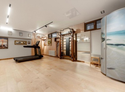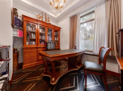 БАССЕЙН!! Продажа загородного дома общей площадью более 1400 кв.м. Дом построен в 4 этажа. С лифтом! Отделка натуральным камнем в классическом стиле: наборный паркет, дубовые панели, натуральный мрамор, гипсовая лепнина, мозаика, бронза, много оригинальной живописи. Мебель дорогих итальянских фабрик. На облагороженном участке 55 соток с открытым теннисным кортом, фонтаном, прудом и летней ротондой. Ночная подсветка дома и освещение участка. Так же на участке гараж на 4 машины и сервисный дом (120 кв. м.