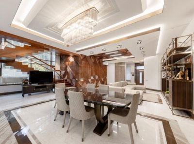 Продажа загородного дома общей площадью 1852 кв.м. Новорижское шоссе, 9 км от МКАД. Коттеджный поселок Никольская Слобода. Дом построен в 2 этажа под ключ. Стиль дома лаконичный с элементами эклектики и лёгкими веяниями восточной архитектуры. Строгий монохромный фасад с текстурной белой штукатуркой и контрастными горизонтальными элементами из тонированной лиственницы. В отделке дома использованы только качественные и дорогостоящие материалы: Освещение Eichholtz, Vibia, Flos, Aromas del Campo, Baxter. Мебель BoConcept, Bonaldo, Minotti, Living Divani, Baxter.