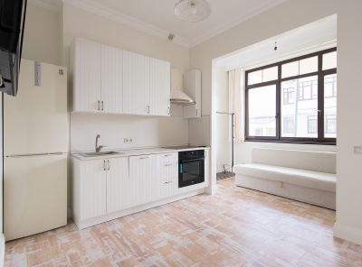 Аренда 2 комнатной квартиры площадью 43 кв.м. Новорижское шоссе 14 км от МКАД. Коттеджный поселок Павлово-2. Квартира полностью меблирована. Оборудована новой бытовой техникой от лучших европейских производителей, кондиционеры во всех комнатах. Современный сдержанный дизайн. Окна выходят в тихий двор.Планировка: кухня-столовая-гостиная, спальня, с/у.