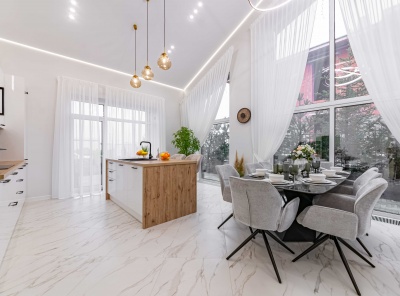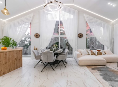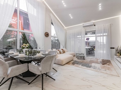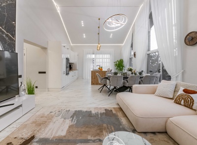 Продажа загородного дома площадью 324 кв.м. Новорижское шоссе, 23 км от МКАД. Коттеджный поселок Новорижский. Дом построен в 2 этажа под ключ. Интерьер выполнен в элегантном стиле современной классики. Просторные комнаты, организованные с продуманной функциональной планировкой, создают комфортную атмосферу, идеально подходящую для проживания большой семьи. Большие окна наполняют пространство естественным светом, визуально расширяя комнаты и создавая уютное ощущение открытости и воздушности.