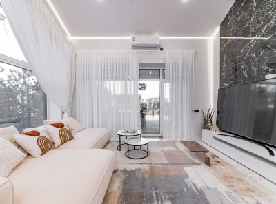 Продажа таунхауса площадью 238 кв.м. Новорижское шоссе, 23 км от МКАД. Коттеджный поселок Футуро Парк. Этот таунхаус сочетает в себе современный дизайн, функциональность и комфорт для всей семьи. Интерьер выполнен в современном стиле с использованием натуральных материалов и светлых оттенков, создающих атмосферу уюта и простора. Большие панорамные окна наполняют помещения естественным светом и открывают виды на зеленые зоны поселка. Ухоженный участок 1,6 сотка.