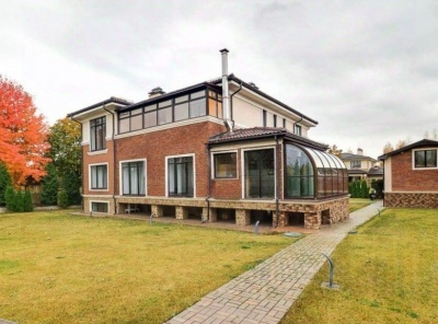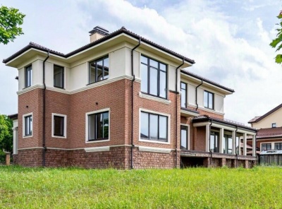 Продажа загородного дома площадью 1380 кв.м. Коттеджный поселок Новахово. Новорижское шоссе, 12 км от МКАД. Дом построен в 2 уровня. Выполнена дизайнерская отделка под ключ, с мебелью. Широкая лестница с мраморными ступенями, панорамные окна, напольные панно из натурального оникса, увеличенные двери из массива ореха и настенные панели из американского дуба. На участке 18 соток выполнен ландшафтный дизайн.