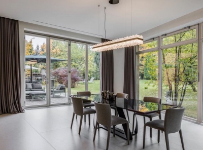 Продажа загородного дома площадью 550 кв. м. Рублёво-Успенское шоссе, 16 км от МКАД. Коттеджный поселок Горки-8. Дом построен в 2 этажа под ключ. В оформлении фасада использовались натуральные материалы: стекло, дерево, камень. Дом полностью меблирован стильной итальянской мебелью и предлагается в полной комплектации. Установлена самая передовая система видеонаблюдения и контроля периметра участка.