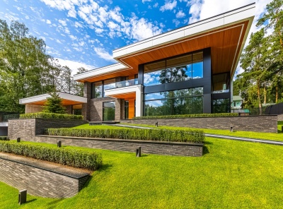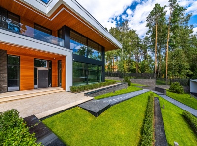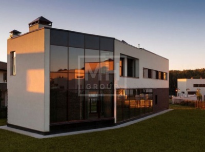 Продажа загородного дома общей площадью 1200 кв.м. Коттеджный поселок Горки-6 Новорижское шоссе, 9 км от МКАД. Дом построен в 3 уровня с частичной отделкой в стиле хай-тек. Большие панорамные окна, отличное планировочное решение, прекрасное расположение в хвойном лесу. Участок 18 соток с готовым ландшафтным дизайном.Планировка:1 этаж - холл, гостиная, столовая и кухня с выходом на террасу, рабочая кухня, 2 спальни, кабинет, с/у, гардеробная, гостевой с/у, кладовая.