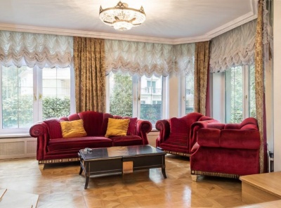 Снижение цены! Продажа загородного особняка с бассейном площадью 580 кв.м. Коттеджный поселок Резиденция Монолит. Новорижское шоссе, 23 км от МКАД. Особняк построен в 3 уровня. Выполнена отделка в классическом стиле с использованием натуральных материалов. Встроенная кухня оборудована всей необходимой бытовой техникой. В доме много пространства и света за счет панорамного остекления террас. Участок 30 соток с ландшафтным дизайном. На участке находится дополнительное строение 400 кв.м.
