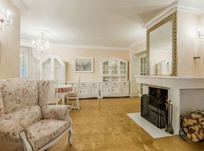 Продажа загородного дома общей площадью 380 кв.м. Новорижское шоссе 20 км от МКАД. Коттеджный поселок Петрово-Дальнее. Дом построен в 2 этажа, под ключ, с мебелью. В отделке использовались только качественные и дорогостоящие материалы. Дополнительные постройки на участке включают детскую площадку и отдельный гараж на 3 автомобиля и 2 просторные квартиры для персонала.
