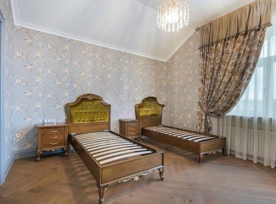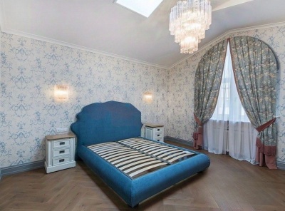Продажа загородного дома общей площадью 500 кв.м. Новорижское шоссе, 18 км от МКАД. Коттеджный поселок Ренессанс парк. Дом построен из кирпича в 2 этажа. Фасад отделан натуральным камнем. Выполнен высококачественный дизайнерский ремонт, полностью меблирован. Участок 19 соток. На участке выполнен ландшафтный дизайн, построен гараж.Планировка:1 этаж - кухня, столовая-гостиная, спальня, котельная, с/у,2 этаж - 3 спальни со своей гардеробной и с/у.