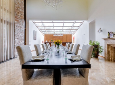 Продажа загородного дома общей площадь 1400 кв.м. Поселок Жуковка-21, Рублево-Успенское шоссе, 9 км от МКАД. Дом построен в 3 уровня на участке в 50 соток. Отделка под ключ. Дом полностью меблирован, бытовая техника от премиум производителей. Интерьер из высококачественных экологичных материалов.Планировка: 1 этаж: холл, гостевая спальня, гостиная с камином, столовая с баром-кухня и выходом на террасу.