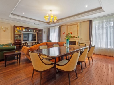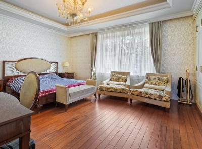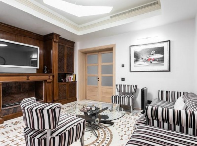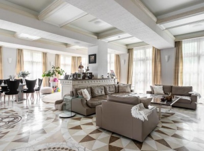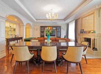 Продажа загородного дома площадью 2570 кв. м. Сколковское шоссе, 2 км. от МКАД. Коттеджный поселок Сколково. Внутренний дизайн дома, выполненный в стиле ар-деко, подчеркивает утонченный вкус и высокий социальный статус собственников дома. Парадный холл украшен экзотической лестницей в форме подковы с коваными перилами по периметру.