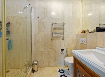 Продажа загородной квартиры общей площадью 184,3 кв.м. Новорижское шоссе, 20 км от МКАД. Коттеджный поселок Агаларов Эстейт. 3 комнатная квартира полностью меблирована и оборудована бытовой техникой. В стоимость входит гараж на 2 м/м, а также просторная кладовая 15 кв.м. В доме есть тренажерный зал, бильярдная, сауна и комната отдыха.Планировка: гостиная-столовая, 2 спальни, спальня с с/у, кухня, прихожая, постирочная, с/у, терраса.