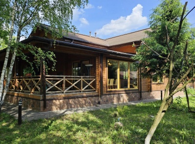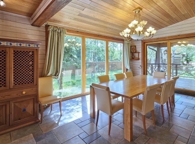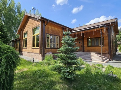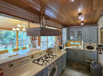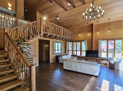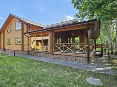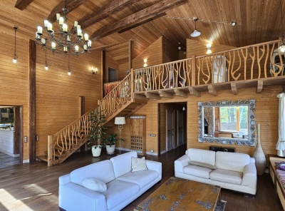 Продажа загородного дома площадью 460 кв. м. Новорижское шоссе, 39 км. от МКАД. Коттеджный поселок Истра Кантри Клаб-3. Дом построен в 2 этажа под ключ. Дом, построенный из канадского клееного бруса, выигрывает за счет натуральных, качественных материалов и грамотного проекта. Продуманная и удобная планировка. Панорамное остекление и большие окна создают приятную атмосферу для восстановления душевного комфорта. Интерьер и обстановка в доме выдержаны в деревенском стиле с упором на экологичность.