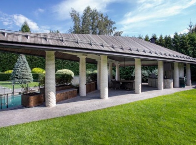Продажа загородной резиденции общей площадью 2250 кв.м. Новорижское шоссе, 14 км. от МКАД. Коттеджный поселок Павлово. Дом построен в 3 этажа по индивидуальному авторскому проекту известного Архитектурного Бюро «Слобода» с применением множества технических и интерьерных решений. В строительстве, отделке фасадов и внутренних работ использованы исключительно материалы топовых брендов. Отделка фасадов – песчаник, гранит, мрамор. Крыша – состаренная медь. Вся мебель от эксклюзивных брендов заказана индивидуально под размеры помещений.