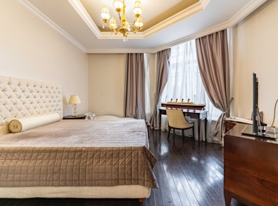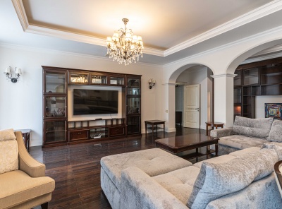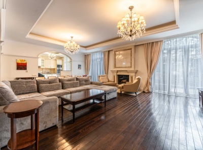 Продажа загородной квартиры общей площадью 185 кв.м. Новорижское шоссе, 20 км от МКАД. Коттеджный поселок Агаларов Эстейт. Просторная трехкомнатная квартира, обставленная изысканной мебелью и оснащенная современной бытовой техникой, ждет своего нового владельца. В стоимость включены привилегии, достойные ценителя комфорта: просторный гараж, рассчитанный на два автомобиля, и вместительная кладовая площадью 15 квадратных метров.