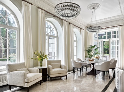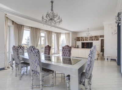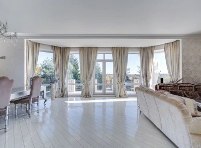 Продажа загородного дома общей площадью 1765 кв.м. Коттеджный поселок Сады Майендорф. Рублевское шоссе, 7 км от МКАД. Дом выполнен в современном стиле, под ключ. Панорамные окна, светлое освещение, округлые формы и тонкие детали, придающие интерьеру утонченность. Площадь участка 157 соток.