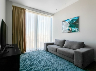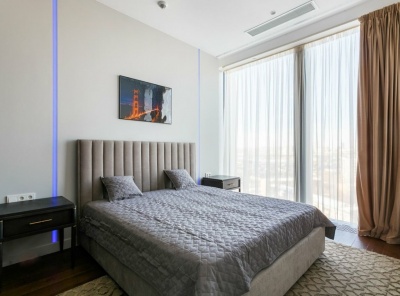 Аренда 2-х комнатных апартаментов площадью 63 кв.м. Метро Деловой центр, 5 минут пешком. 1-ый Красногвардейский проезд, дом 22с2. ЖК Neva Towers / Нева Тауэрс. Квартира с новым дизайнерским ремонтом из дорогостоящих материалов. Есть вся необходимая бытовая техника и мебель, готова к проживанию. Высокие потолки. Панорамные окна выходят на башни делового центра. Функциональная планировка: кухня-гостиная, спальня, гардеробная, санузел.